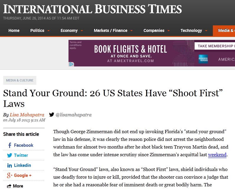 The International Business Times wrote that stand your ground laws are also known as “shoot first” laws: