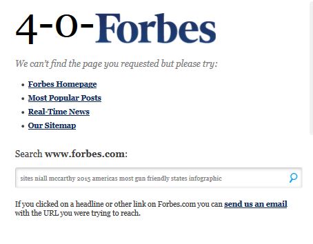Less than a day after sites like The Truth About Guns (see also Gun Free Zone and probably others) began highlighting the problems with this infographic, it disappeared from Forbes website. I don’t know whether it was embarrassment or intellectual honesty or both which led to the removal of the graphic. But if it was intellectual honesty I would think some sort of correction or clarification would be posted rather than just sweeping it under the virtual rug.