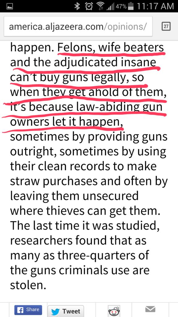 I skimmed the article – headlined: “Dear gun control advocates: Gun owners are your allies” — and thought he offered an interesting take on the issue. I saw him arguing that gun laws don’t ultimately prevent gun crime, that gun control advocates don’t help reduce gun crime by haranguing gun owners, and that even though gun owners themselves are not part of the problem, they can be a part of the solution.