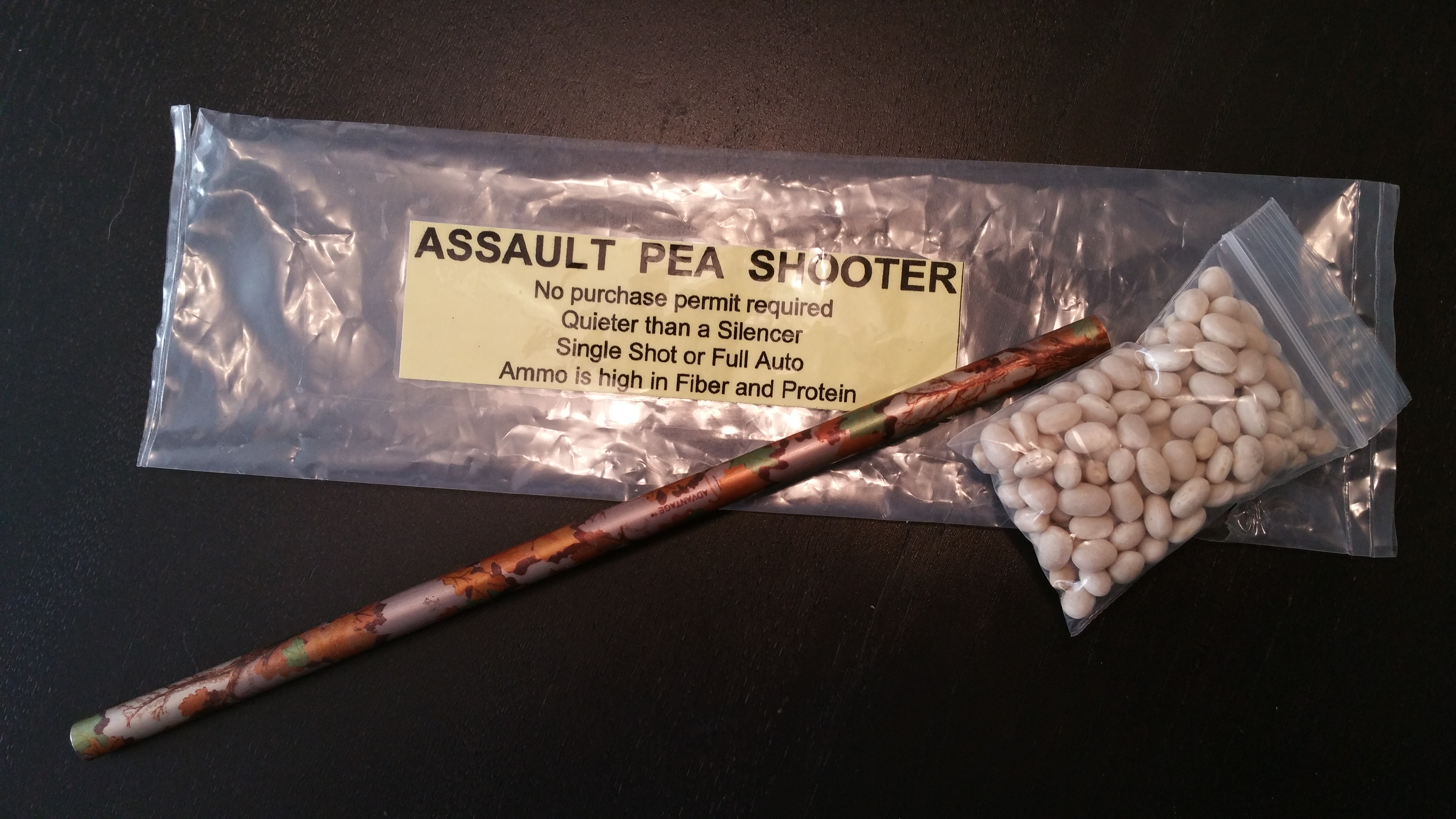 Seeking refuge from so many terrible headlines, I was going through my cell phone pictures and found something that brought a smile to my face. One of the coolest and funnest things I’ve seen/bought at a gun show is the Assault Pea Shooter pictured below.