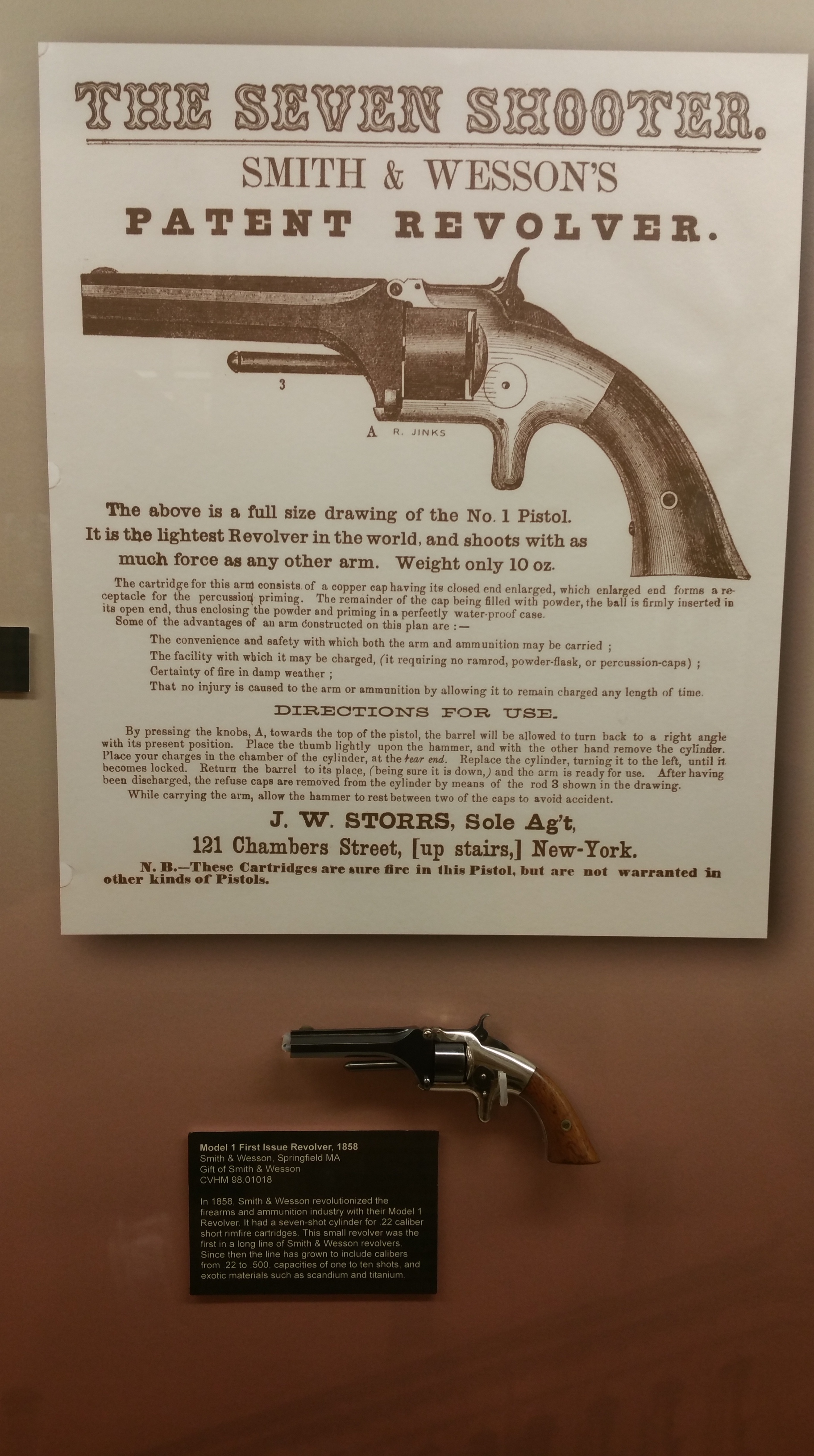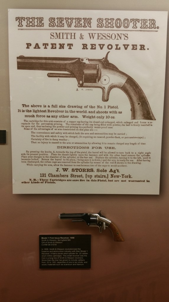I was happy to find, therefore, a Smith & Wesson sponsored Gallery of Firearms History at the Wood Museum of Springfield History.