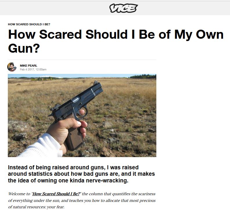 Earlier this year, Mike Pearl from Vice Media contacted me about a piece he was writing on the topic, “How scared should I be of my own gun?” I don’t respond to every media request, but I had some things to say on the topic. We spoke for 45 minutes and to his credit Pearl used quite a bit of what I said — and pretty accurately, too.