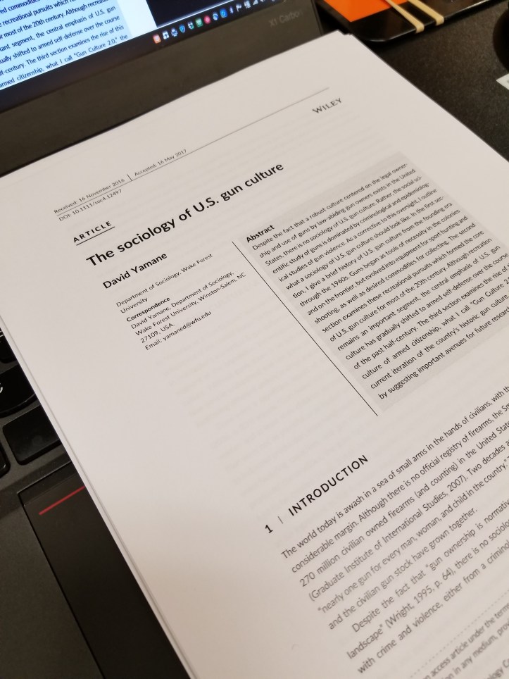 […] my previous work in the sociology of religion with my new interest in gun culture. The second was a review essay in which I argued that social scientists need to get beyond their excessive focus on epidemiology […]