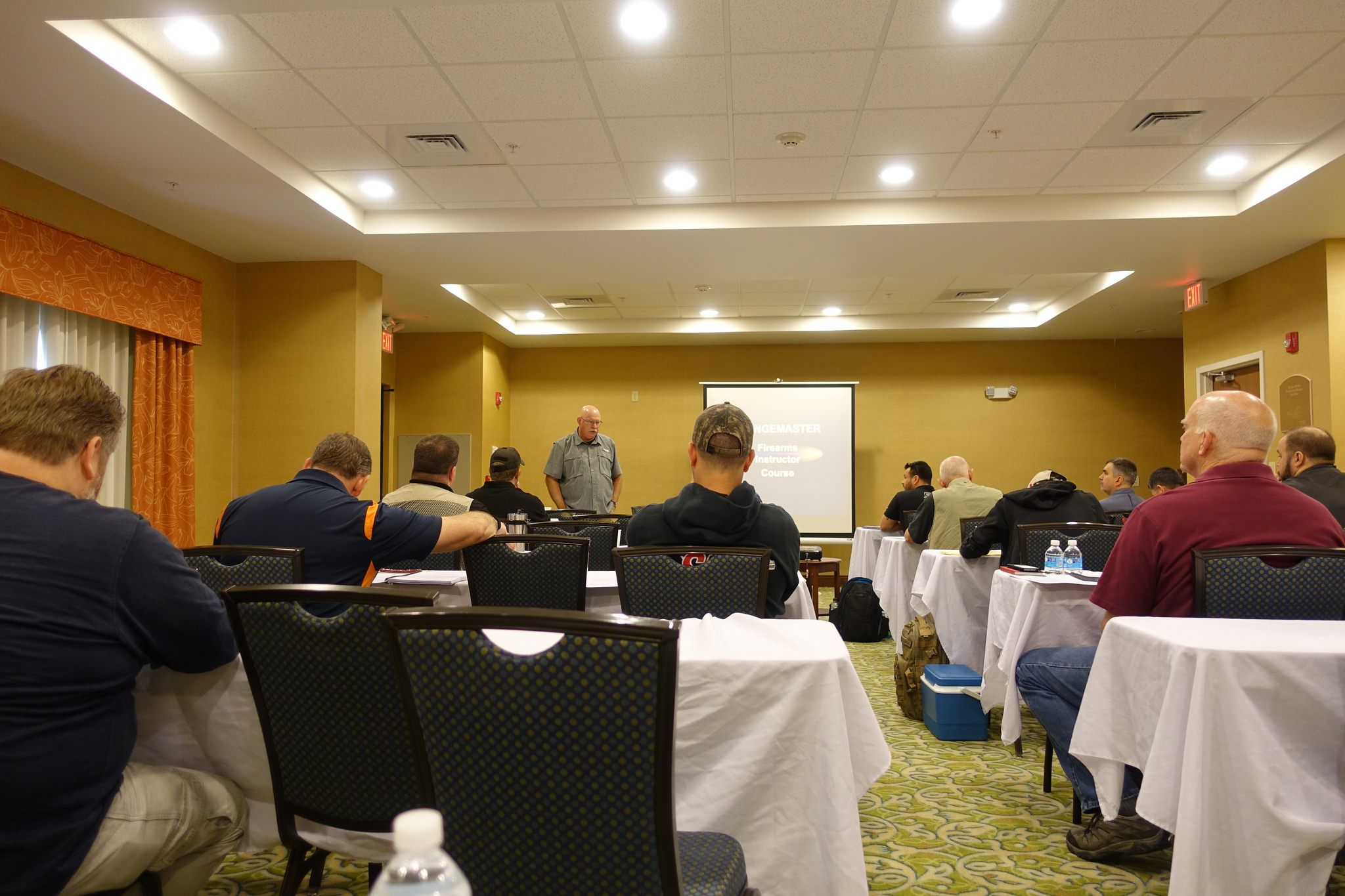 The classroom portion of the Rangemaster course was held at the Holiday Inn Express in Culpeper, Virginia. As we approach 0900 hours on the Friday of Memorial Day weekend, the meeting room at the hotel begins to fill with 14 students (13 men and 1 woman) and 5 staff. The students came from near (Virginia, Maryland, North Carolina) and far (Georgia, Pennsylvania, Wisconsin), and even further in the case of one student from Costa Rica.