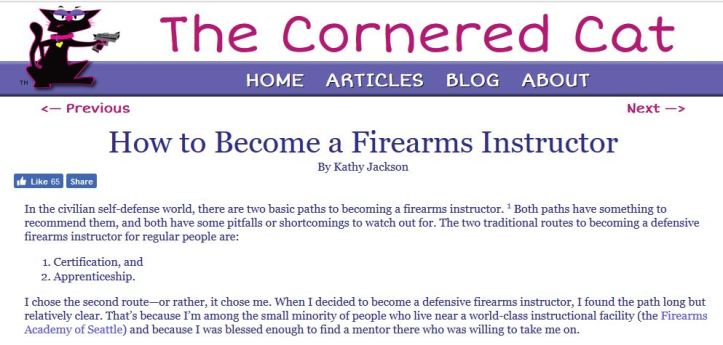 Two days ago, I used a post by Kathy Jackson as a point of departure for considering apprenticeship as a path to becoming a firearms instructor and a potential way – like professionalization, licensing, and certification – to ensure quality in training services offered to the private sector.