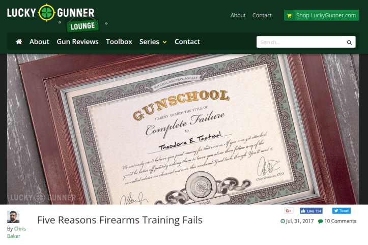 Chris Baker over at the Lucky Gunner Lounge posted an interesting piece recently on “Five Reasons Firearms Training Fails.”