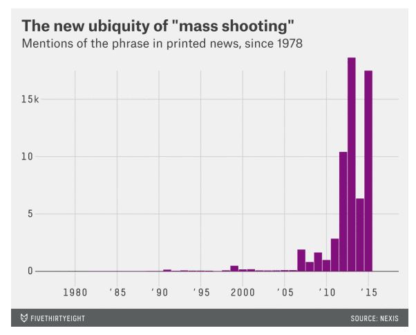 An analysis published in FiveThirtyEight in January of 2016 suggests the same may be true of “mass shootings” today.