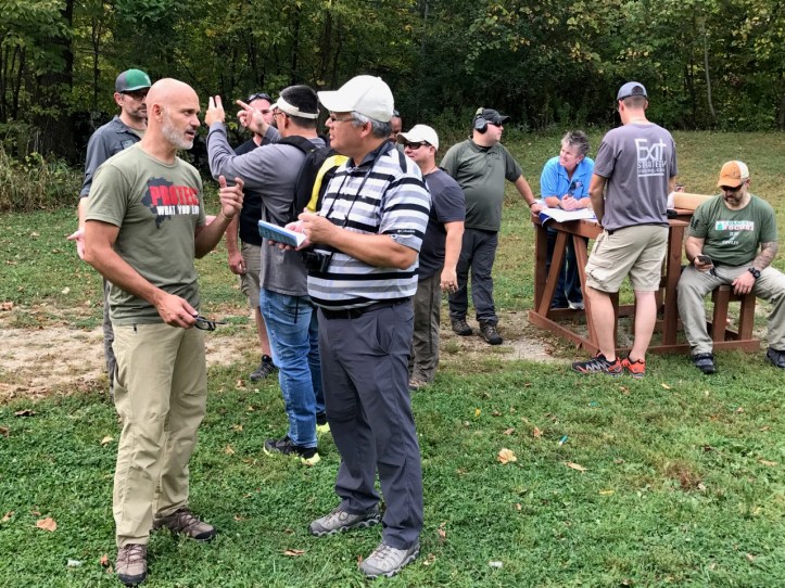 Thanks for sharing these experiences. I wonder if feedback like yours (if you gave it to him back then) helped because during the instructor conference I attended, a great deal of attention was paid to the medical kit and what would happen in the case of a medical emergency. And an hour was also set aside for a presentation by one of the instructors who has experience in this area. I don’t know what his general practice is in terms of shooting in front of his students, but he did shoot alongside his instructors at the conference I attended. Can’t comment on the 15 words vs. 2. Will plead the fifth on that one!