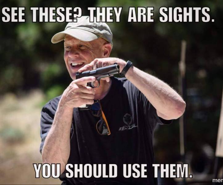 […] Recall that one commentator posted a sarcastic meme (is that redundant?) combining a picture of Clint Smith of Gunsite and Thunder Ranch fame pointing at the rear sights on a pistol with the text “See these? They are sights. You should use them.” […]
