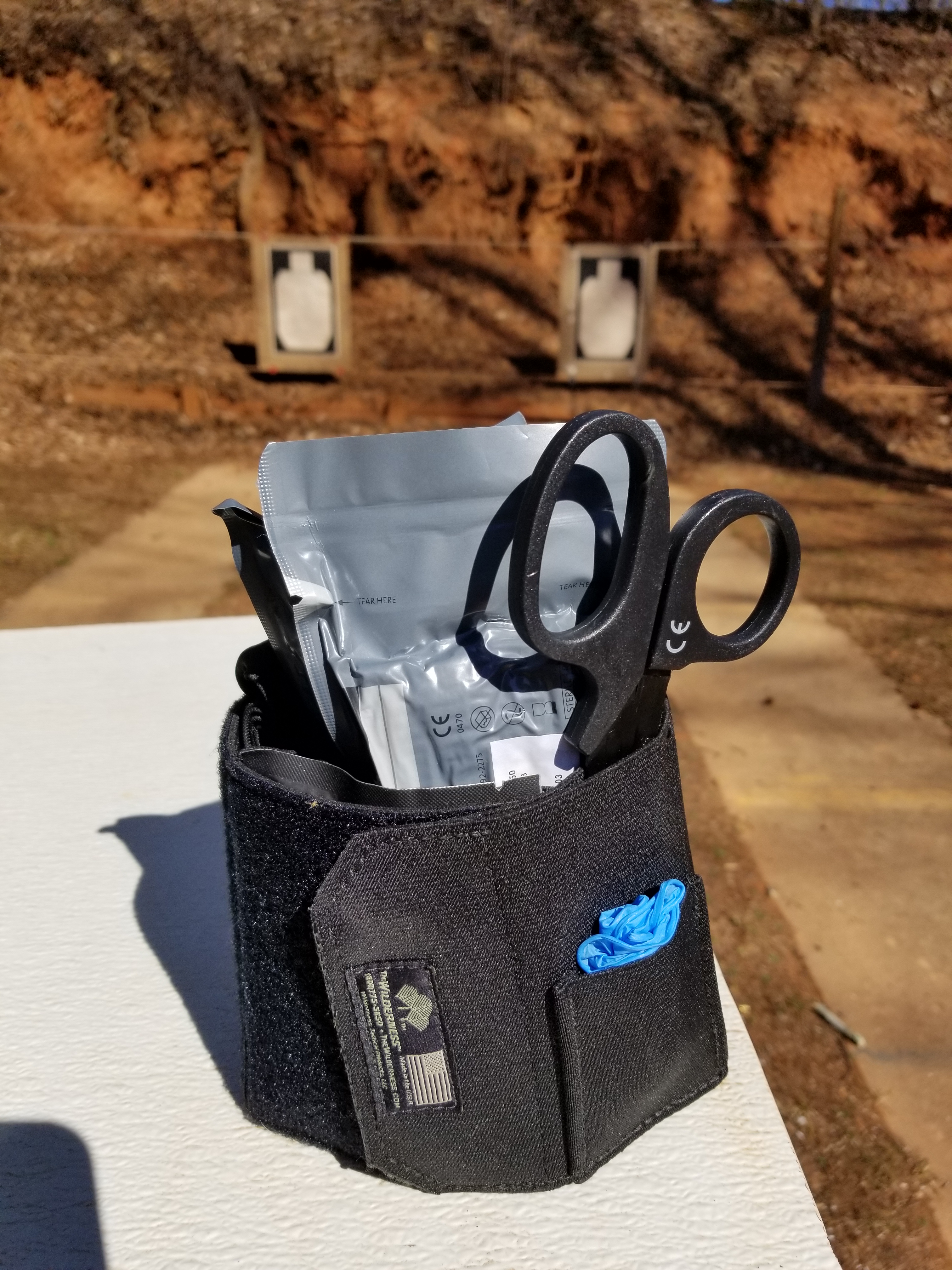 As we were setting up on the range, John put out a medical kit and briefly and casually reviewed what would happen in the event that either of us suffered a gunshot injury. Although I have several medical kits around (at home, in my car), I had never gotten around to putting one in my range bag. This was a good reminder to do that right away, which I did for my next trip to the range.