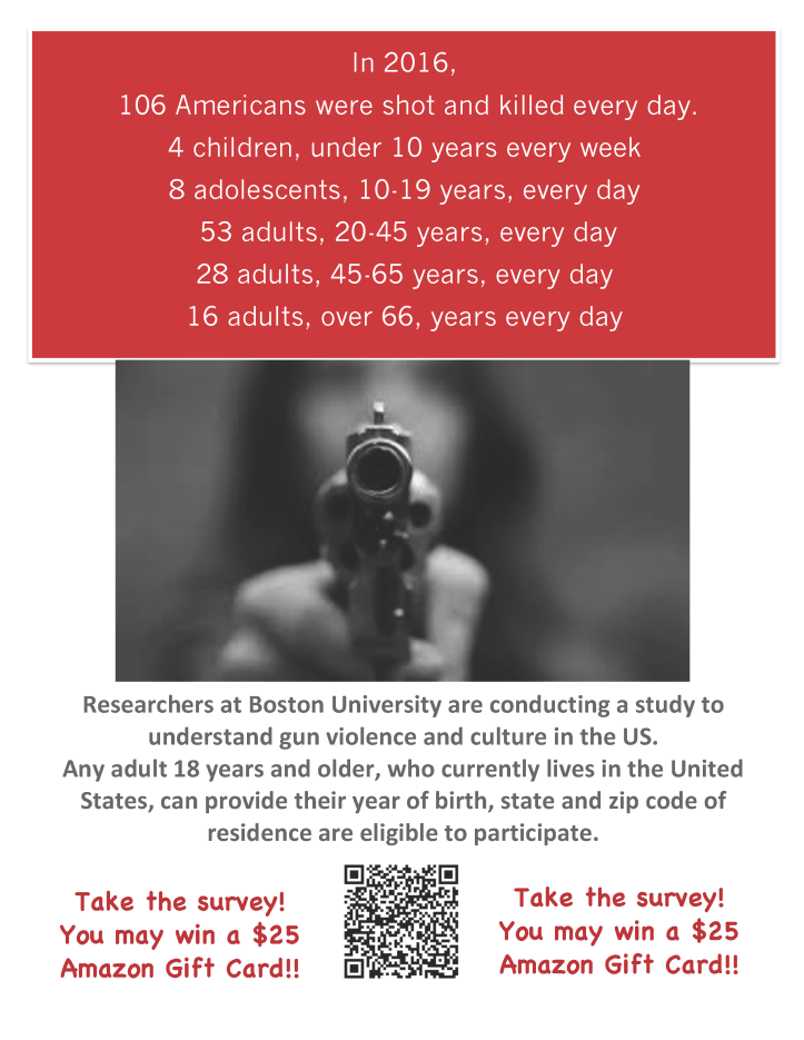 The principal investigator is somewhat more honest in the flier put together to publicize the study, which makes clear the primary interest is in gun violence and gun control, not gun culture.