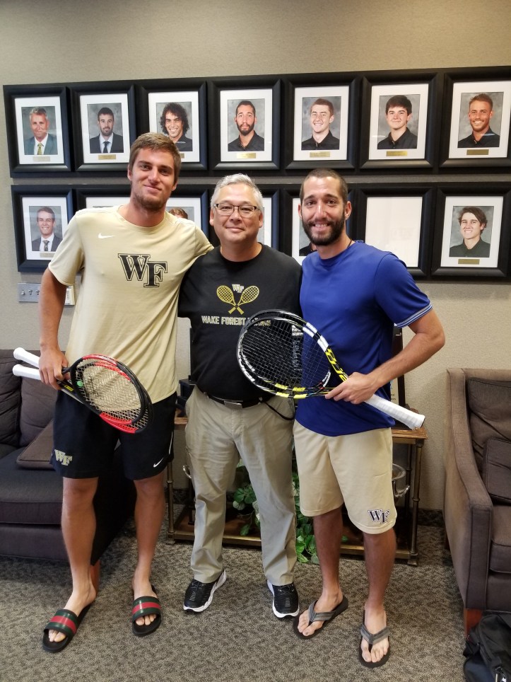 Six days later, I delivered the rackets to the men’s singles finalists, both of whom play for Wake Forest, guaranteeing us an individual National Championship to go along with the team title. Go Deacs!