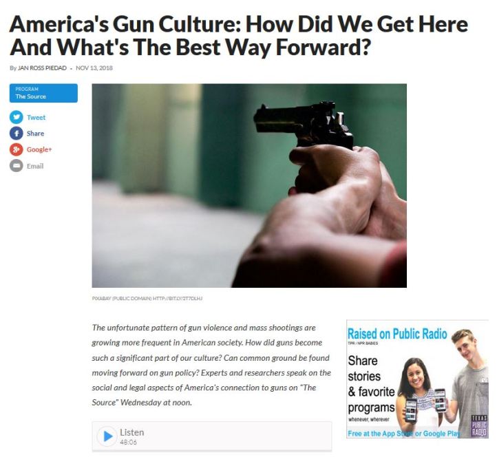 Discussing America’s Gun Culture on Texas Public Radio’s “The Source”