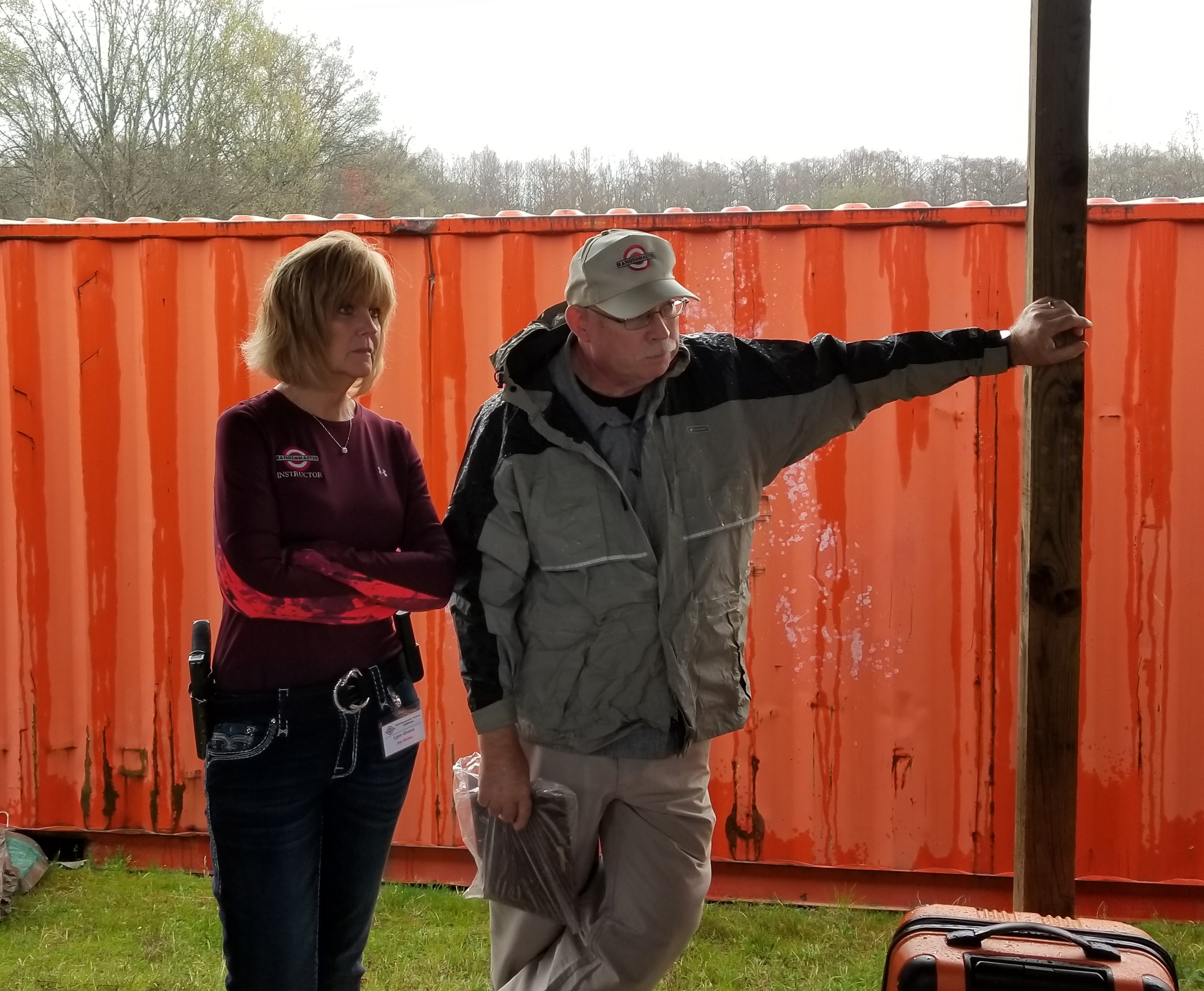 In this case, the scenario was set in a Wal-Mart parking lot and entailed a woman (played enthusiastically by Tiffany Johnson) running toward the student screaming for help. The situation was intentionally ambiguous and led to any number of different, mostly sub-optimal outcomes. One student pulled her gun within 5 seconds of the encounter and shot everyone. As Douglas said in the debrief with this student, “Once you start shooting, it’s hard to stop.” The default orientation of “gun in hand, gun in use” does not work well for the armed citizen.