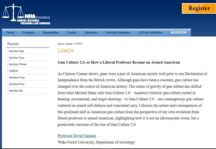 I’m looking forward to giving a preview of what I hope will be my book on Gun Culture 2.0.