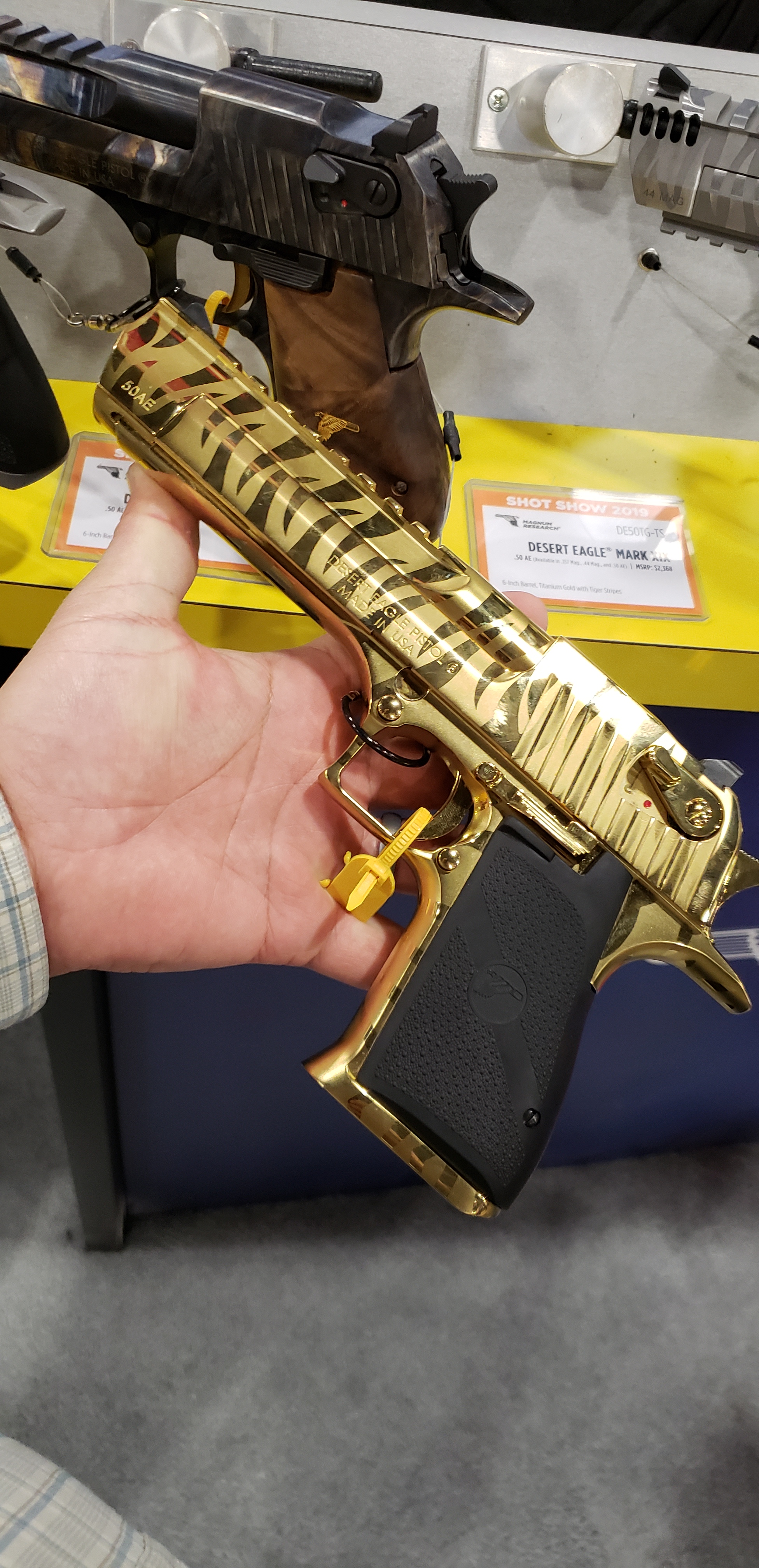 Hi, I was searching which company had those gold rifles on their stand? Seeing if I can contact for purchase.