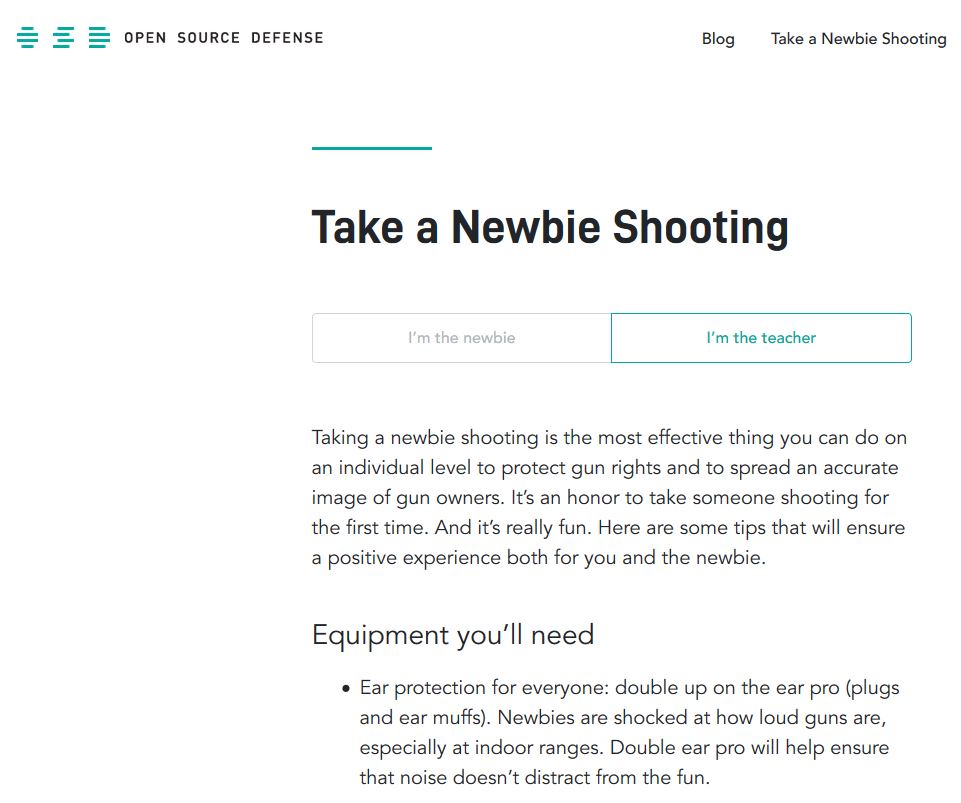 I love this aspect of Open Source Defense’s site because one of the three main takeaways from my talk at the National Firearms Law Seminar last spring was that people interested in advancing gun culture should promote the act of shooting whenever possible.