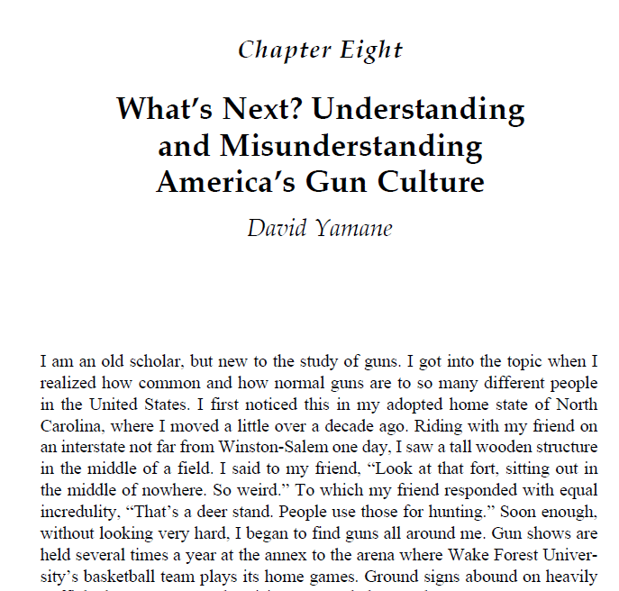 In the interest of NOT burying my ideas, here’s my chapter on “Understanding and Misunderstanding America’s Gun Culture.”