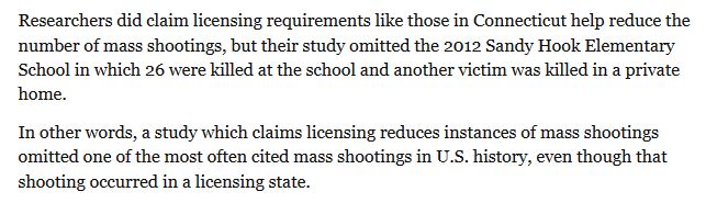Insofar as the author of the Breitbart piece cited the Johns Hopkins press release rather than the (open access, publicly accessible) original publication, I’m fairly confident he did not read the article he is criticizing. But even reading the press release makes clear any claim that the researchers excluded Sandy Hook from their study is false.
