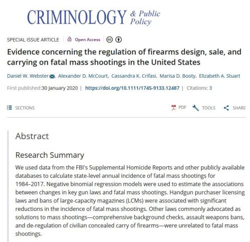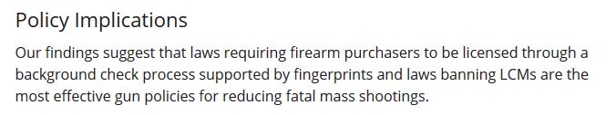 Glaring red flag, they make a claim about handgun licensing (and the flag is the same for LCM’s as well), but, as usual for public health researchers, don’t look at whether the actual shooter’s whose crimes are being used as data could qualify for licensing, nor, in states with licensing, how they actually acquired the firearm used, nor do they examine the extant research on the effectiveness of such laws in reducing actual access. They take the effectiveness of the laws as a given and, presuming they work, then presume that the shooters would have been impacted by them. Such criminological research on the micro level is crucial before claiming a given policy is the cause of lower rates of anything. Which is a continuing problem with public health models treating objects as vectors, they ignore the human beings involved.