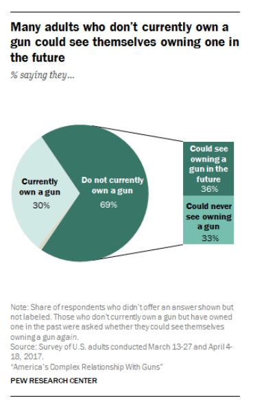 - Not Currently But Possible Gun Owners: 33 to 39%