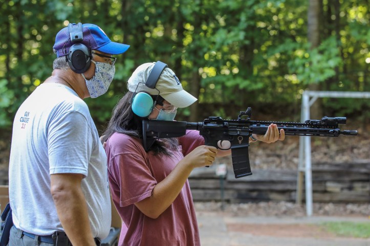 I give this student a lot of credit because she overcame a tremendous fear of guns and shot two pistols and a rifle during our range trip.