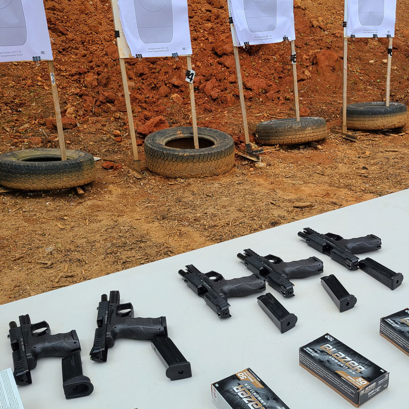 Given the COVID conditions in June 2020, enrollment in the course was capped at 10 students and the round count was reduced to 50 rounds. Through a relationship with H&K, students have the opportunity to borrow a VP9 pistol to use in the class.