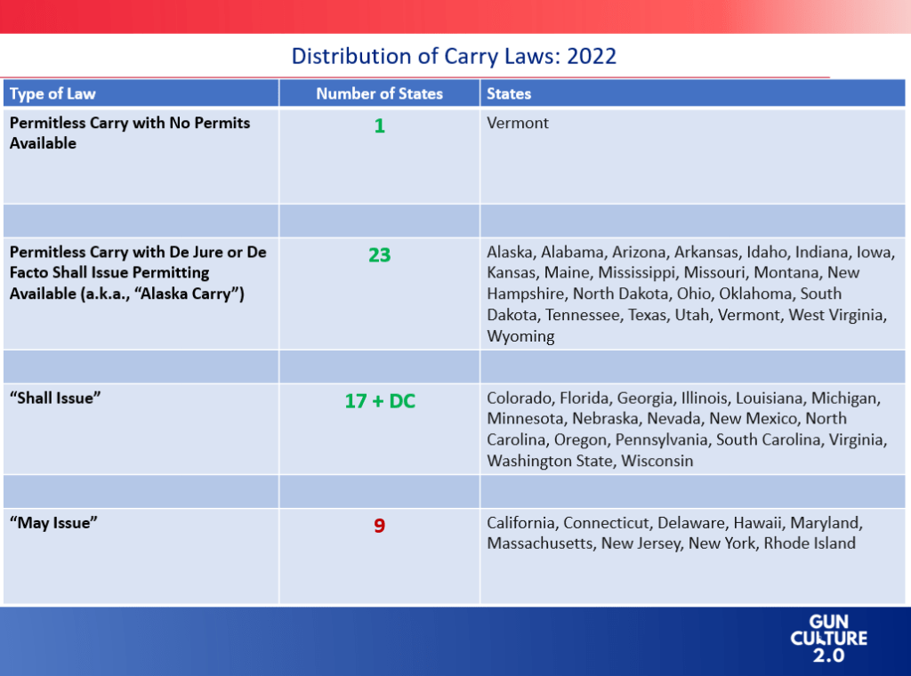 These developments provide a good occasion to review concealed weapon carry permit laws in the US.
