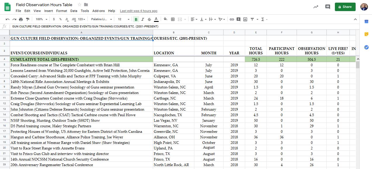 […] then, I have logged 799.5 hours of field observation of organized gun events (especially gun training), not including hundreds of hours of television […]
