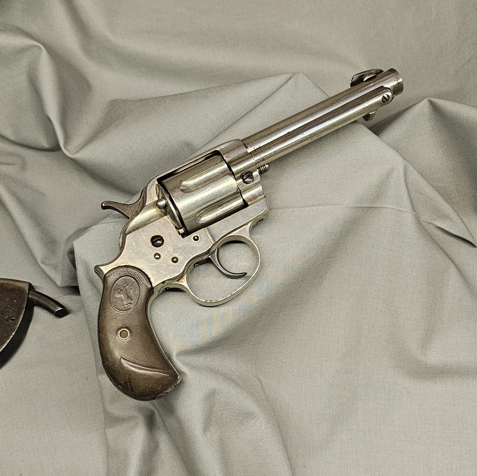 The gun was displayed alongside a belt and holster made by the “renowned saddle maker Francis A. Meanea out of Cheyenne,” circa 1870s.