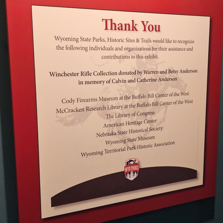 Only when I got to the end did I find the plaque indicating that the rifle collection was donated and the Cody Firearms Museum (where I will be heading on this trip) helped with the exhibit.
