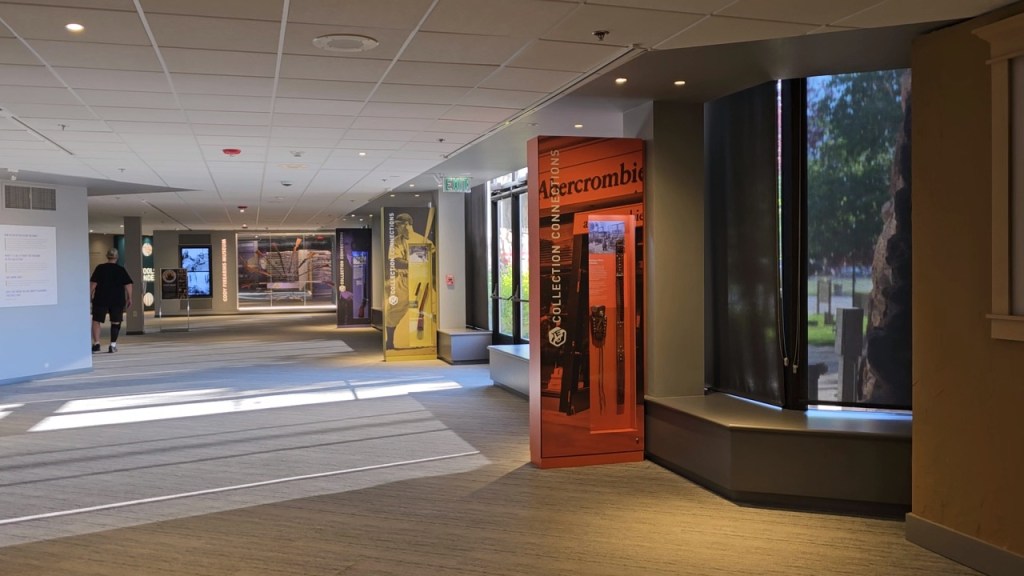 Rather than encountering a Gatling gun at the entrance to the museum, visitors are now greeted by a photo gallery of different “faces” of gun culture, including Chris Cheng (who I have argued embodies Gun Culture 2.0). They then walk past three display cases, one highlighting Abercrombie and Fitch, one Hillerich & Bradsby (Louisville Slugger), and one Henry Ford — all household names to those who know nothing about guns and gun culture.