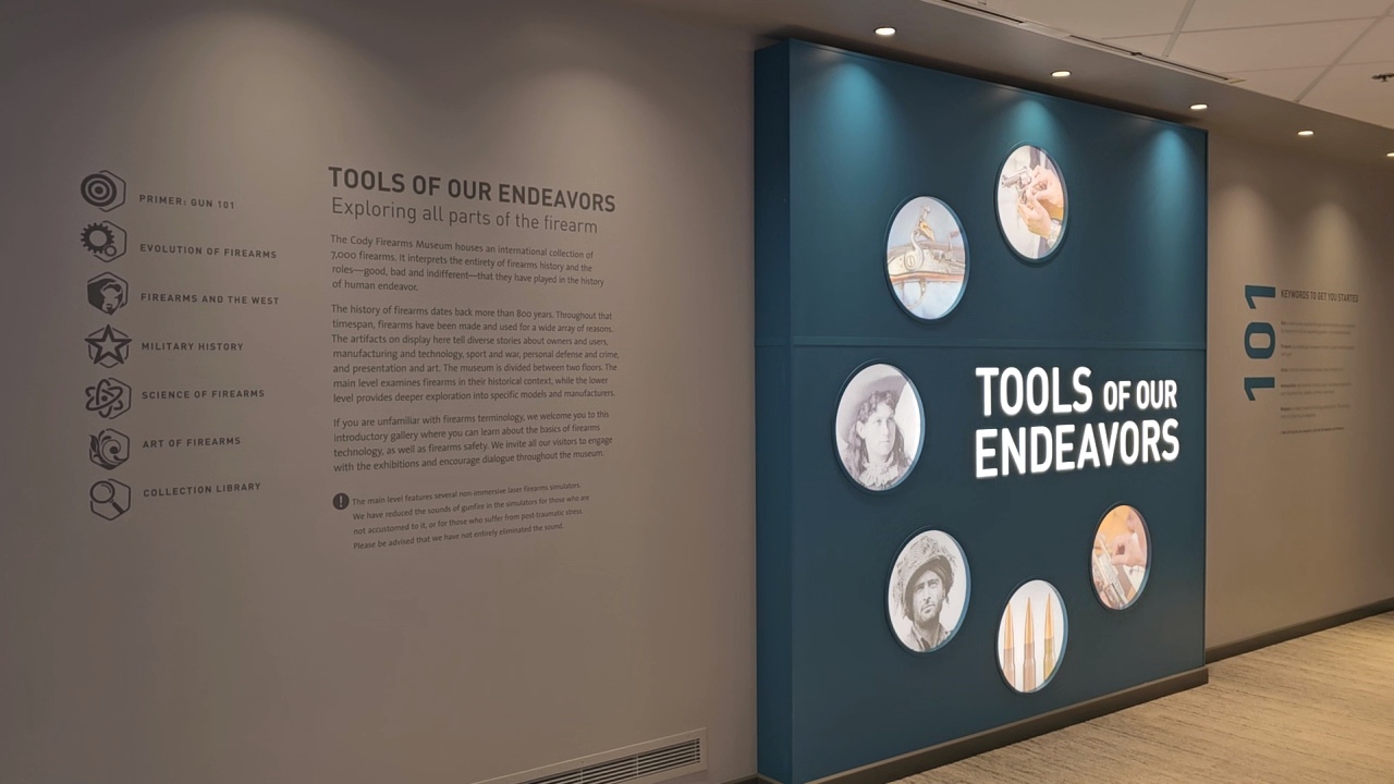 After being greeted by a video of Ashley Hlebinsky and a fan of guns, visitors enter a room that presents important basic information about firearms.